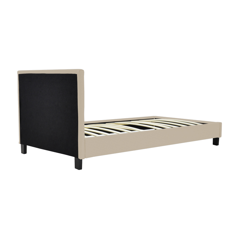 Κρεβάτι Nevil pakoworld ύφασμα εκρού με ξύλινο μαύρο πόδι 90x190εκ