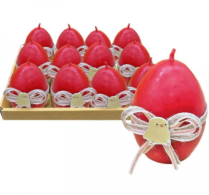 Κερί αυγό σε κόκκινο χρώμα, με σχέδιο κοτούλα από την Bunny's - Διαστάσεις: 8εκ. - Η ελάχιστη ποσότητα αγοράς για αυτό το προϊόν είναι 12τμχ.