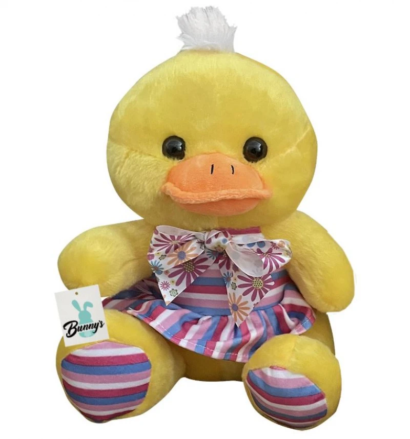 Λούτρινο παπάκι σε κίτρινο χρώμα με φόρεμα - Διαστάσεις: 25εκ.