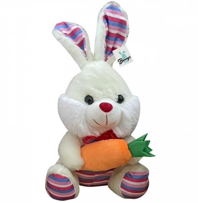 Λούτρινο λαγουδάκι σε εκρού χρώμα με καρότο - Διαστάσεις: 25εκ.