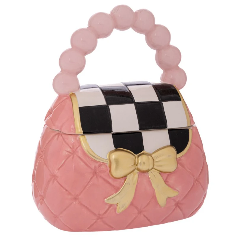 Μπισκοτιέρα Τσάντα Κεραμική Ροζ Με Χρυσό Φιόγκο 22x16x26εκ. iliadis 92387