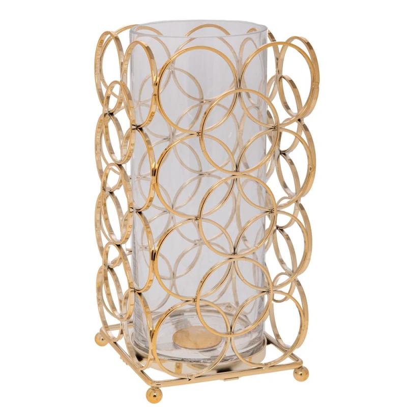 Κηροπήγιο Μεταλλικό Χρυσό Με Γυαλί 13x13x25εκ. iliadis 92035