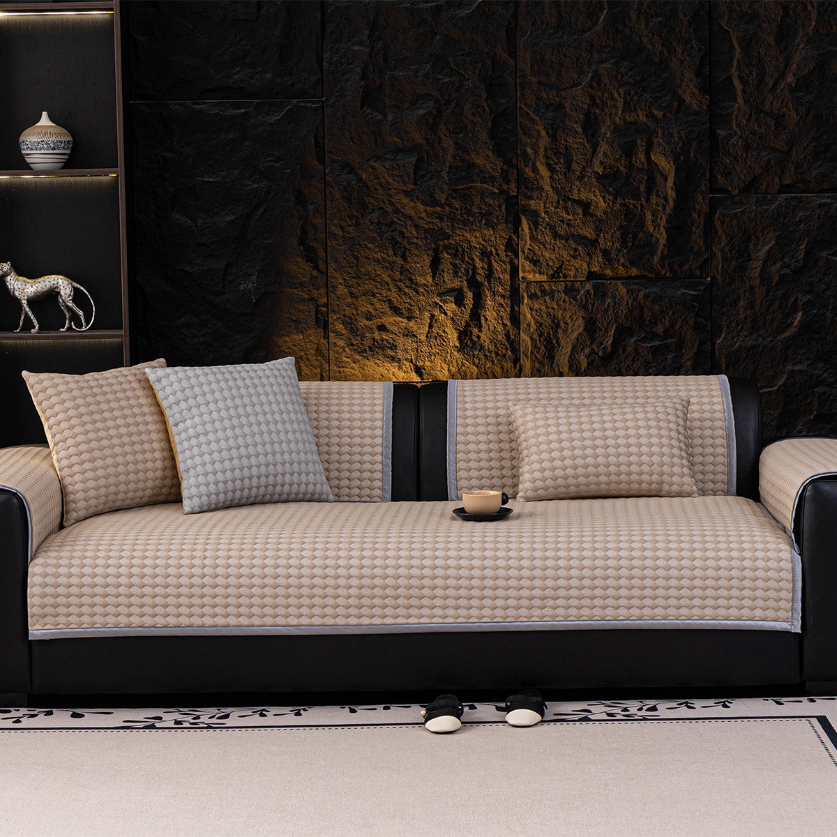 Ανώστρωμα καναπέ Soleil από τη Melinen! Το εξωτερικό του ύφασμα είναι 100% polyester με ανάγλυφες λεπτομέρειες ενώ διαθέτει εσωτερική γέμιση και αντιολισθητική πίσω όψη. Η απαλή υφή του το καθιστά ιδανικό και για χρήση από το κατοικίδιό σας. Διατίθεται σε τρεις αποχρώσεις και τρεις διαστάσεις, για διθέσιο και τριθέσιο καναπέ.