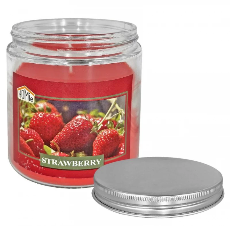 Αρωματικό Κερί Φράουλα Σε Γυάλινο Βάζο Με Καπάκι 280gr/9,5x10εκ. Homie 37-482