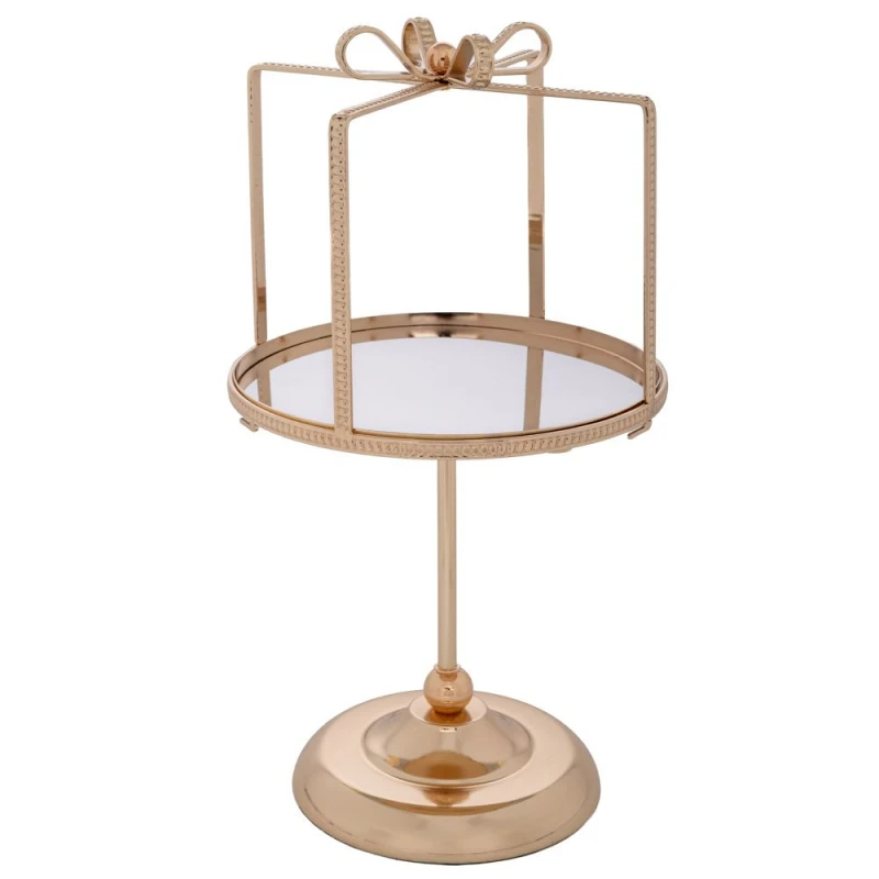 Δίσκος Σταντ Σε Σχήμα Δώρου Μεταλλικό-Γυάλινο Χρυσό 21x21x40εκ. iliadis 92627