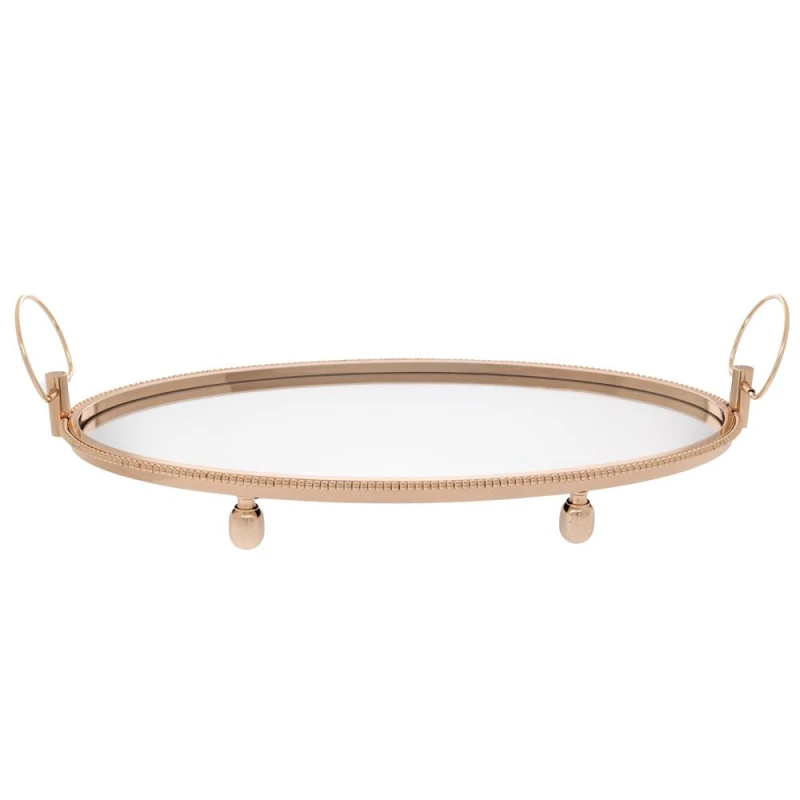 Δίσκος οβάλ μεταλλικός σε χρυσό χρώμα με γυάλινη επιφάνεια από την iliadis - Διαστάσεις: 66x37x11εκ.