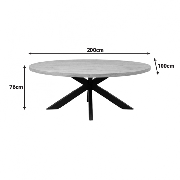 Τραπεζι Jenma pakoworld μασίφ mango ξύλο σε φυσική απόχρωση-πόδι μαύρο μέταλλο 200x100x76εκ