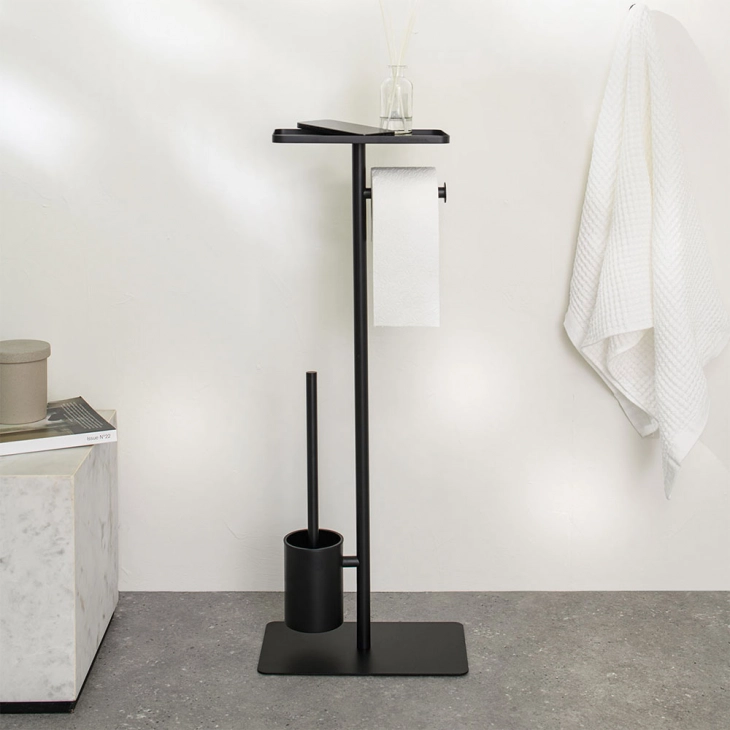 Έξυπνο, κομψό και πάντα σε κοντινή απόσταση! Αυτό το πολυλειτουργικό stand είναι απαραίτητο για το μπάνιο σας. Με θήκη χαρτιού υγείας, ενσωματωμένο πιγκάλ με βούρτσα και ένα εύχρηστο ράφι, θα έχετε τα πάντα κοντά σας. Το καθάρισμα είναι πιο εύκολο από ποτέ. Ο κομψός και προσεγμένος σχεδιασμός δημιουργεί μια κομψή, οργανωμένη εμφάνιση – ακριβώς όπως τη θέλετε!