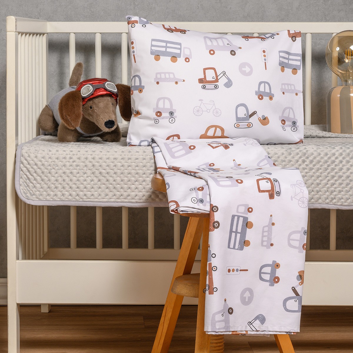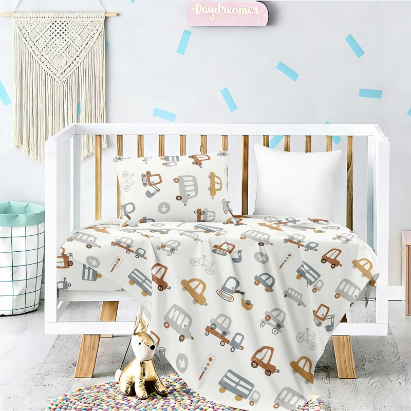 Σετ σεντόνια κούνιας Let's Ride με σχέδιο με αυτοκινητάκια από τη σειρά Prime Line Baby της Melinen! Κατασκευασμένα από 100% βαμβακερό-σατέν ύφασμα 200 κλωστών, έχουν απαλή υφή και λείο φινίρισμα. Αποτελούν ιδανική επιλογή για τον πιο άνετο και υγιεινό ύπνο για κάθε μωρό.