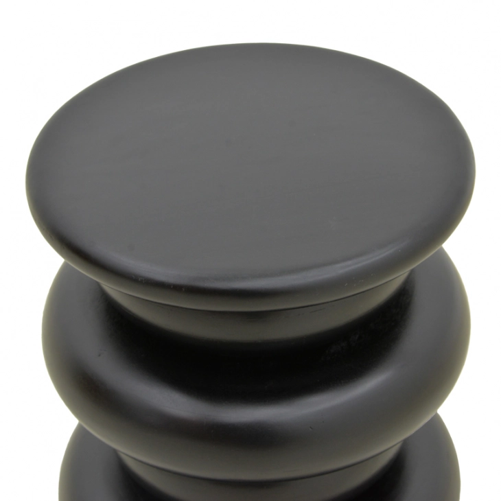 Δώστε ένταση και στυλ στον χώρο σας με την μαύρη έκδοση του σπονδυλωτού μας βοηθητικού τραπεζιού. Κατασκευασμένο από μασίφ ξύλο μάνγκο, αυτό το τραπέζι συνδυάζει την οργανική ζεστασιά του ξύλου με τη δυναμική κομψότητα του μαύρου χρώματος. Οι καμπύλες του αντανακλούν το φως δημιουργώντας ένα μοναδικό οπτικό παιχνίδι, καθιστώντας το την ιδανική επιλογή για όσους θέλουν να ξεφύγουν από τα συνηθισμένα.