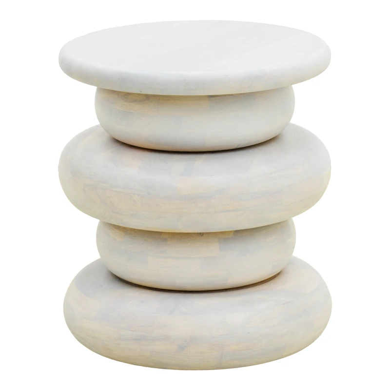 Βοηθητικό τραπέζι Circena pakoworld μασίφ μάνγκο ξύλο λευκό Φ40x45εκ