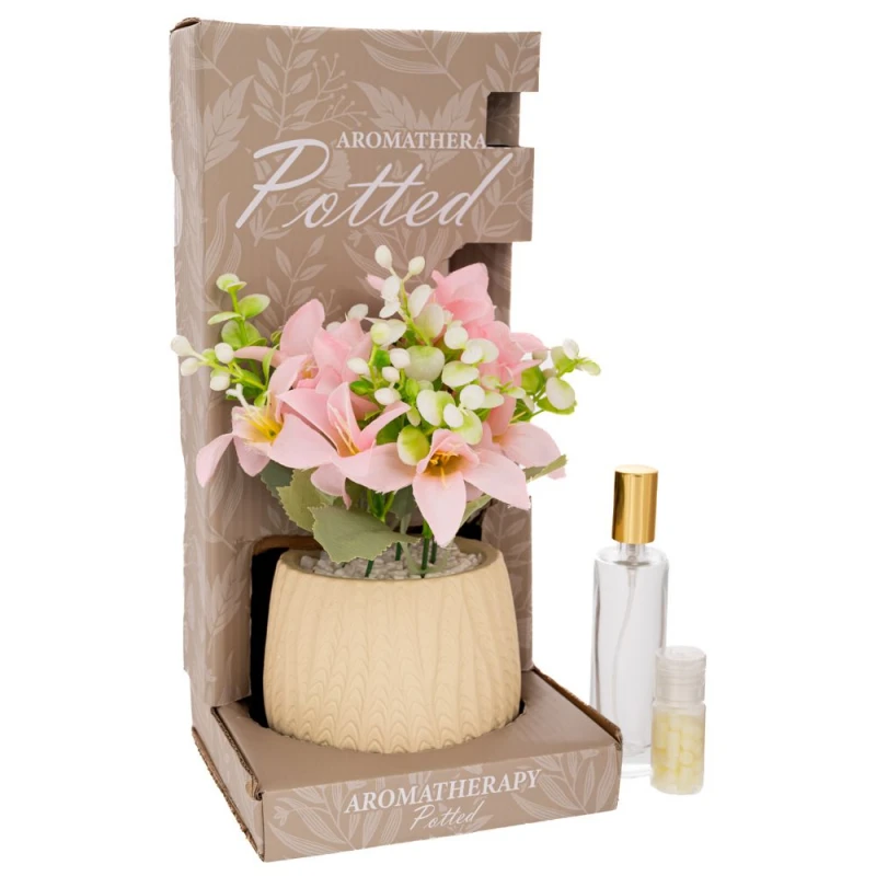 Κομψό διακοσμητικό γλαστράκι με αρωματικό χώρου από την εταιρεία Iliadis, που συνδυάζει αισθητική και ευχάριστη ατμόσφαιρα. Διαθέτει τεχνητά λουλούδια σε μοντέρνα γλάστρα και συνοδεύεται από diffuser με αρωματικό υγρό, το οποίο διαχέει διακριτικά το άρωμα στον χώρο. Ιδανική επιλογή για διακόσμηση σπιτιού ή ως δώρο, προσφέροντας μια αίσθηση φρεσκάδας και χαλάρωσης.
