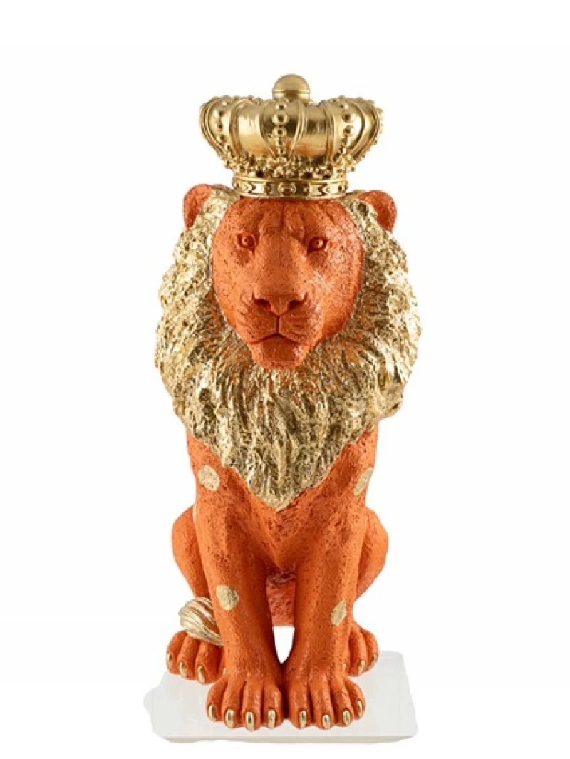 Διακοσμητικό Επιτραπέζιο Polyester Λιοντάρι Πορτοκαλί-Χρυσό 17x29x40,5εκ. Zen Collection 26.4.52732