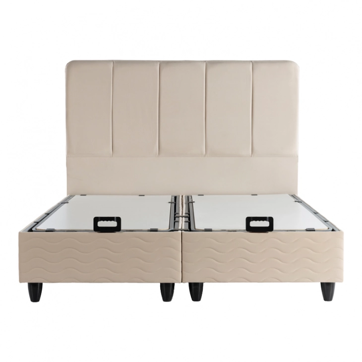 Κρεβάτι διπλό Lunda pakoworld με αποθηκευτικό χώρο κρεμ βελούδο 160x200εκ