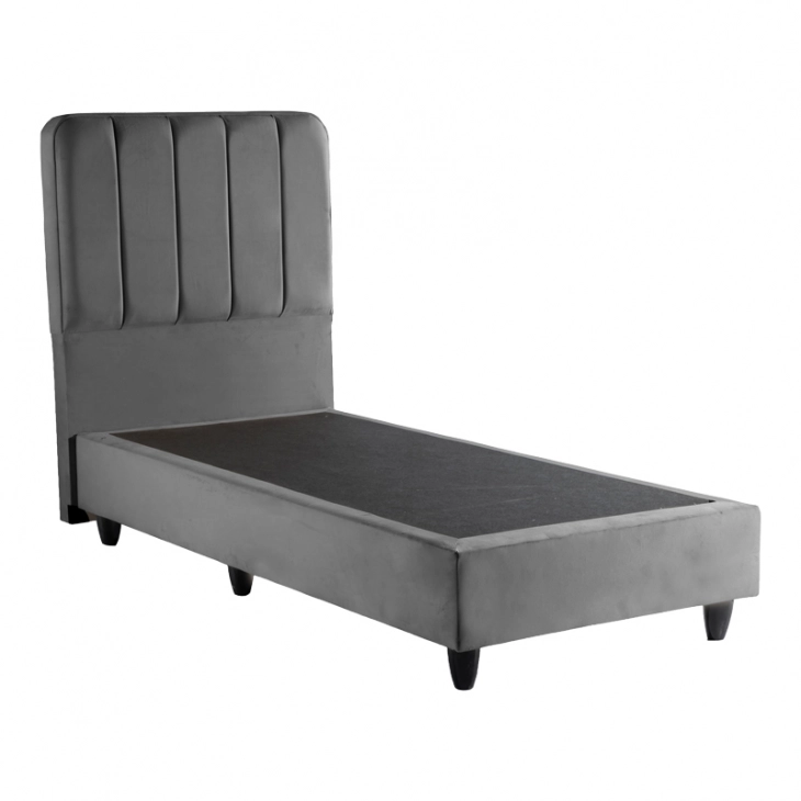 Κρεβάτι μονό Lunda pakoworld ανθρακί βελούδο 90x200εκ