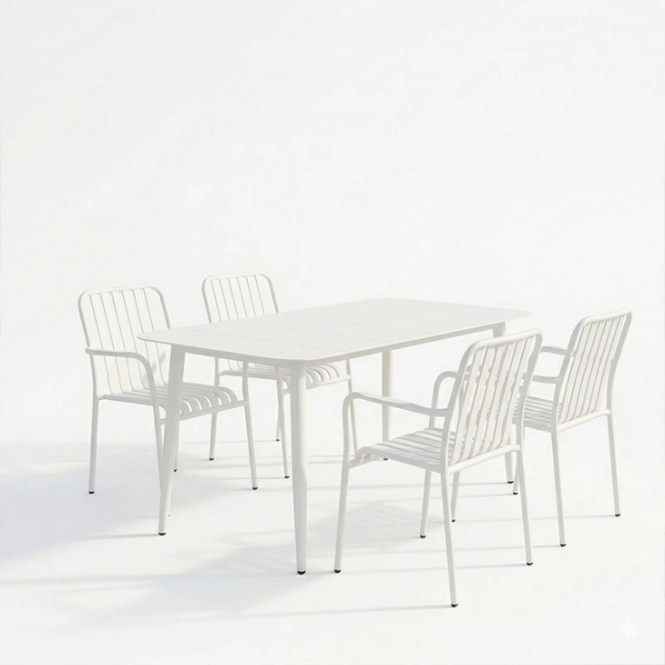 Τραπεζαρία Heven Vista pakoworld σετ 5τεμ λευκό αλουμίνιο 150x80x72εκ