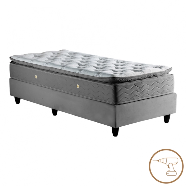 Κρεβάτι μονό Υπόστρωμα Pakda pakoworld ανθρακί βελούδο 90x200εκ