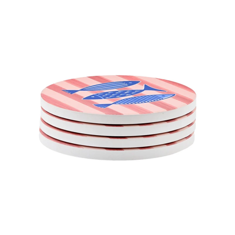 Σουβέρ Σετ 4τμχ Κεραμικό Με Αντιολισθητική Βάση Φελλού Φ10,3εκ. Porto Pesce Estia 07-39271