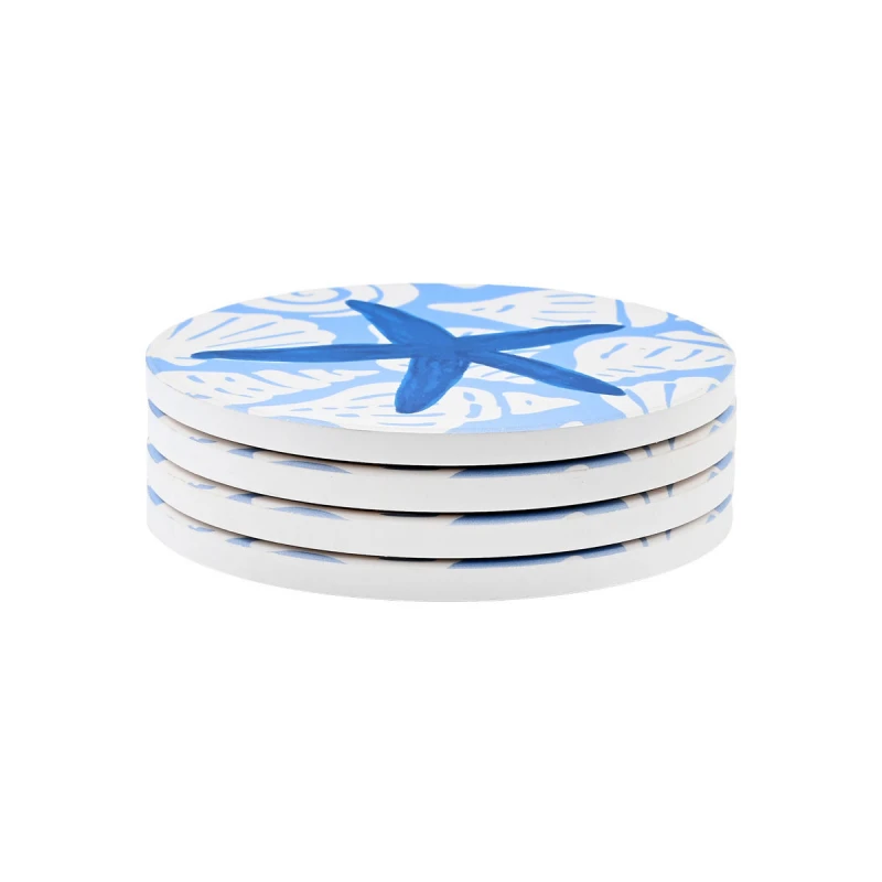 Σουβέρ Σετ 4τμχ Κεραμικό Με Αντιολισθητική Βάση Φελλού Φ10,3εκ. Shell Shore Estia 07-39295