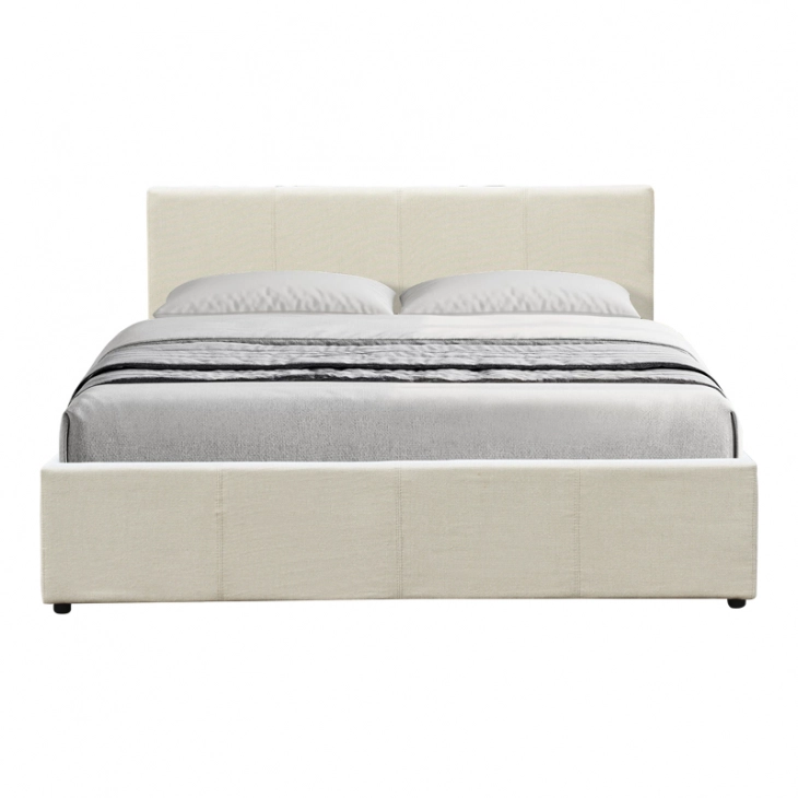 Κρεβάτι Dellia pakoworld με αποθηκευτικό χώρο ύφασμα κρεμ 150x200εκ