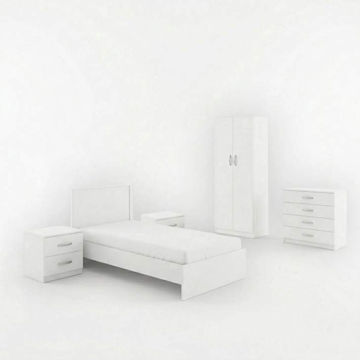 Σετ Κρεβατοκάμαρας Athos λευκό με Κρεβάτι 90x190εκ Σετ 5τεμ