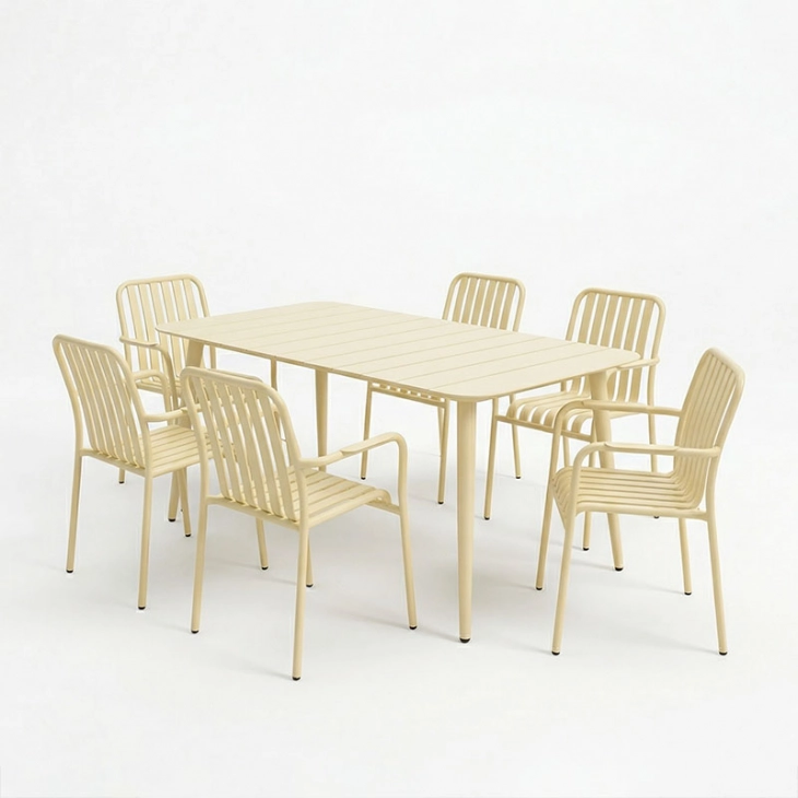 Τραπεζαρία Heven Vista pakoworld σετ 7τεμ σαμπανί αλουμίνιο 150x80x72εκ