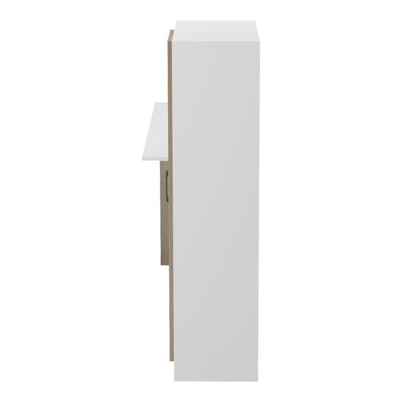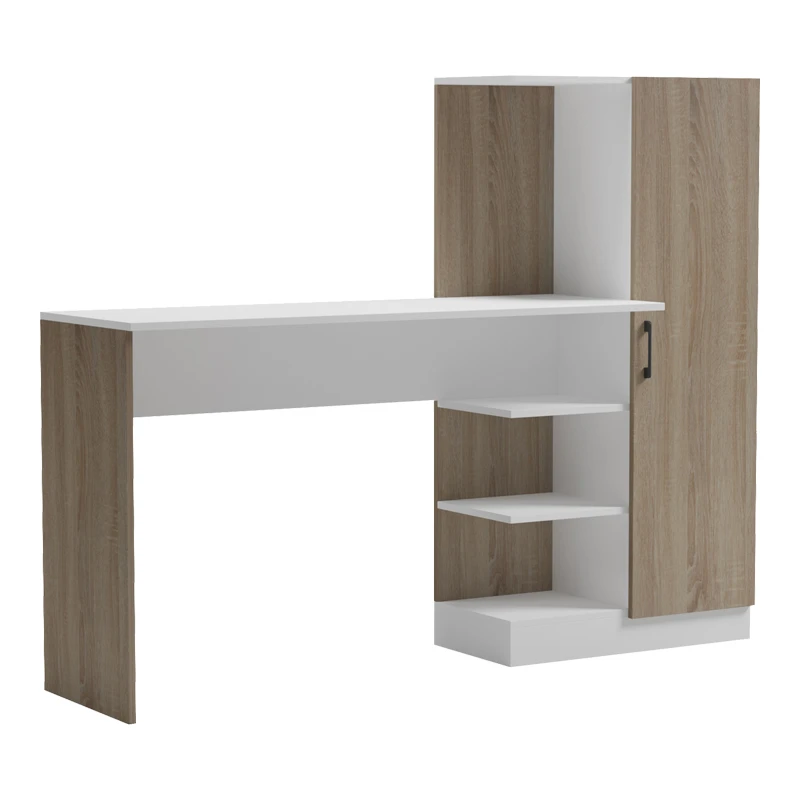 - Περιλαμβάνει πολλαπλά ανοιχτά ράφια για την τακτοποίηση βιβλίων, αρχείων ή διακοσμητικών, καθώς και ένα κλειστό ντουλάπι για την ασφαλή φύλαξη προσωπικών αντικειμένων ή εξοπλισμού.