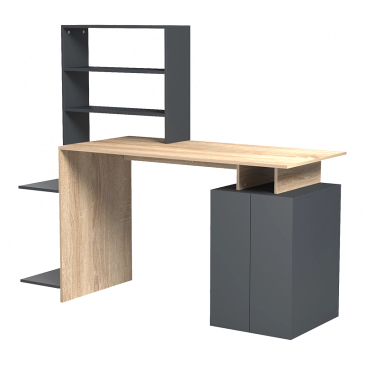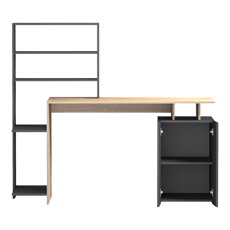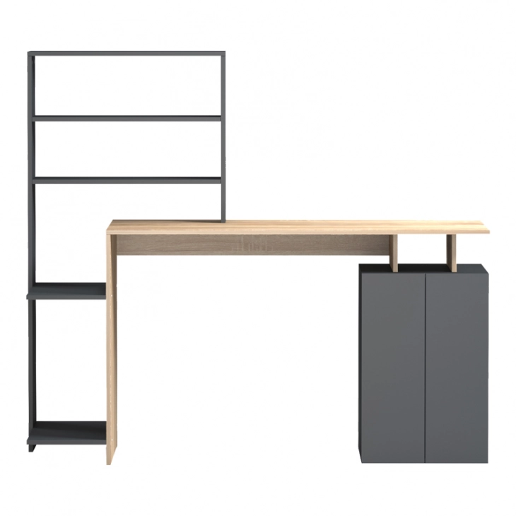 Γραφείο με βιβλιοθήκη και ντουλάπι Meza pakoworld sonoma-ανθρακί 146.3x55x128.8εκ