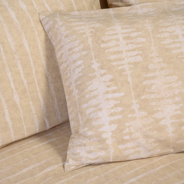 Σετ σεντόνια Kai με γεωμετρικό σχέδιο από τη σειρά Casual Line της Melinen! Κατασκευασμένα από 50% βαμβακερό - 50% πολυεστερικό ύφασμα 144 κλωστών έχουν απαλή υφή, λείο φινίρισμα και είναι πολύ εύκολα στο σιδέρωμα. Διατίθενται σε δυο αποχρώσεις και δυο εκδοχές, με κατωσέντονο με λάστιχο ή χωρίς. Κάθε σετ περιλαμβάνει δυο μαξιλαροθήκες με το σχέδιο του πανωσέντονου, το σχέδιο των οποίων ενδέχεται να διαφέρει από αυτό της φωτογραφίας καθώς κατασκευάζονται από τυχαίο τμήμα του υφάσματος. Διατίθεται σε υφασμάτινη συσκευασία-πουγκί.