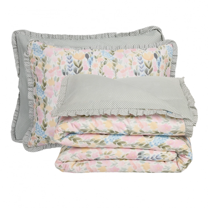 Σετ παπλωματοθήκη της σειράς Daily, με διακοσμητικό βολάν στις 3 πλευρές. Είναι από 100% Βαμβάκι με πυκνότητα ύφανσης 160TC, υποαλλεργικό, απαλό στην αφή, ανθεκτικό στη χρήση με επεξεργασία για εύκολο σιδέρωμα. Το σετ περιλαμβάνει μία παπλωματοθήκη 220x240εκ και δύο μαξιλαροθήκες 50x70+3,5εκ. Das home...makes your house a home!