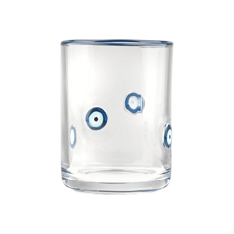 Ένα κομψό και πρακτικό ποτήρι νερού από την Estia, κατασκευασμένο από ανθεκτικό γυαλί. Διακοσμείται με μοτίβο από “ματάκια”, προσθέτοντας μια ιδιαίτερη πινελιά με συμβολισμό προστασίας και θετικής ενέργειας. Ιδανικό για καθημερινή χρήση αλλά και για πιο ξεχωριστές στιγμές, συνδυάζει λειτουργικότητα με μοναδικό στυλ.