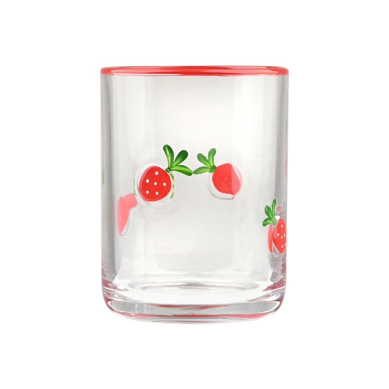 Ένα χαριτωμένο και πρακτικό ποτήρι νερού από την Estia κατασκευασμένο από ανθεκτικό γυαλί. Διακοσμημένο με ζωηρό σχέδιο φράουλας τύπου handmark, προσθέτει παιχνιδιάρικη και φρέσκια πινελιά στο καθημερινό σερβίρισμα. Ιδανικό για νερό, χυμούς ή άλλα δροσερά ροφήματα, συνδυάζει άνεση στη χρήση με ευχάριστη αισθητική.
