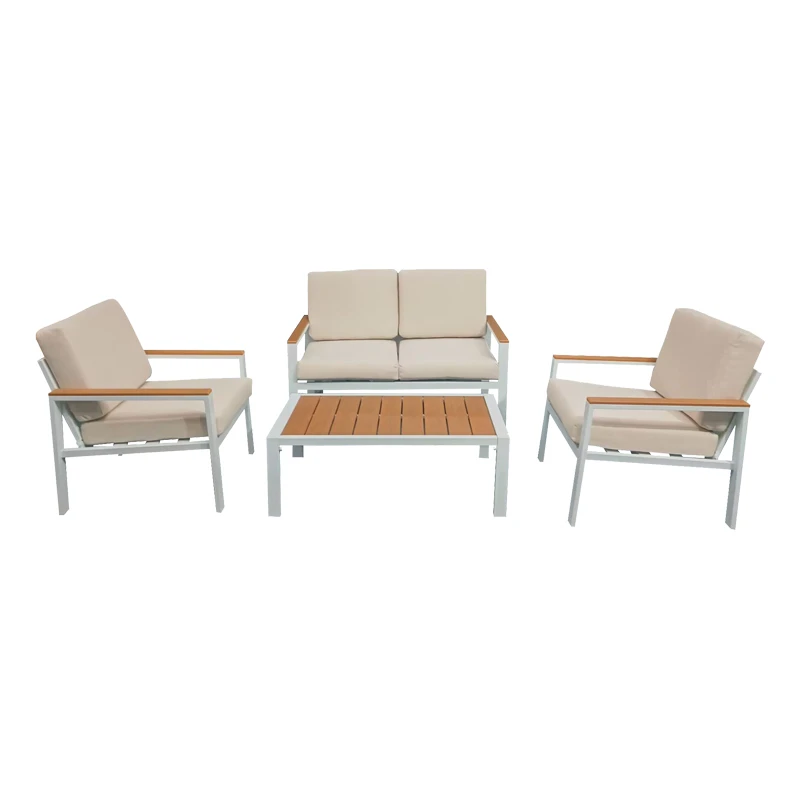 Σαλόνι κήπου Fashionable pakoworld σετ 4τμχ ύφασμα μπεζ-λευκό αλουμίνιο-plywood σε φυσική απόχρωση