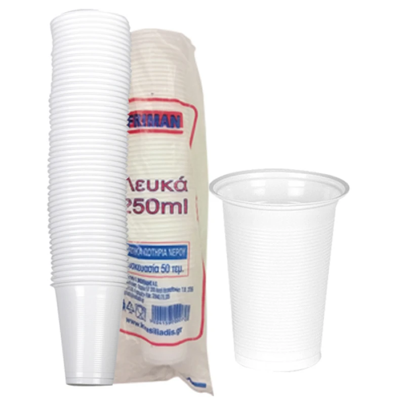 ΣΕΤ 50 Ποτήρια Μιας Χρήσεως Λευκά 0,250Ltr
