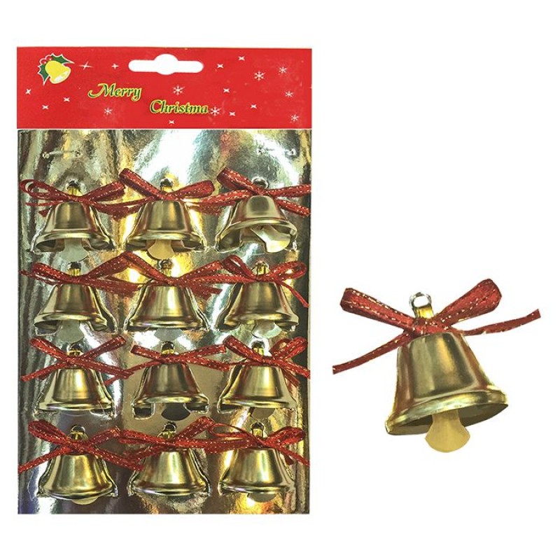 Χριστουγεννιάτικα Στολίδα Σετ 12τμχ Καμπανάκια Μεταλλικά Xmas fest 93-1642