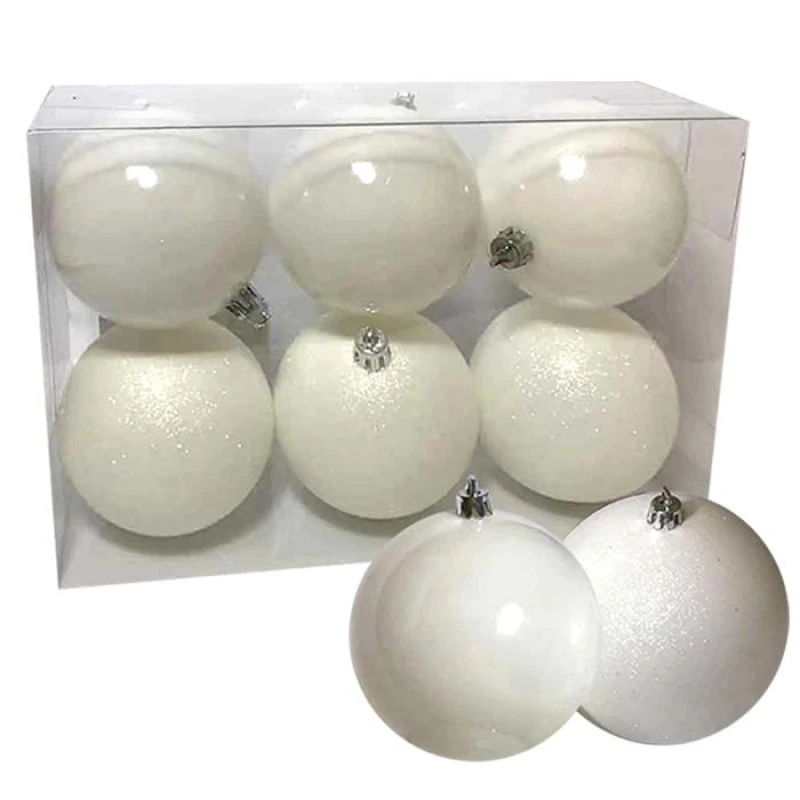Σετ Μπάλες 6τμχ Λευκές Γυαλιστερές & Glitter Δ8εκ. Xmas fest 93-1309